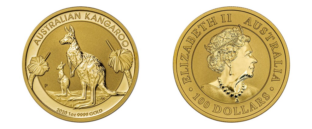 קנגורו – מטבע הבוליון הרשמי של ממשלת אוסטרליה. מונפק מאז 1986. זמין במשקלים אונקיה אחת, חצי אונקיה, רבע אונקיה, עשירית האונקיה ועוד. גם מטבע זה עשוי מזהב טהור. בחזיתו מופיע דמות הקנגורו, אחד מסמליה המוכרים ביותר של אוסטרליה. להבדיל ממטבעות בוליון אחרים עיצוב הקנגורו מתחלף מדי שנה, מה שמעניק ערך אספני מסויים למטבעות משנים עבר. בגב המטבע מופיעה דמותה של מלכת אנגליה, אליזבת השניה. מאפיין עיצובי נוסף שכדאי לשים לב אליו הוא הניגוד בין הגימור המבריק של הדמות, וגימור המאט של הרקע. קוטרו של המטבע בן אונקיה אחת הינו 32.6 מ״מ ועוביו 2.8 מ״מ.